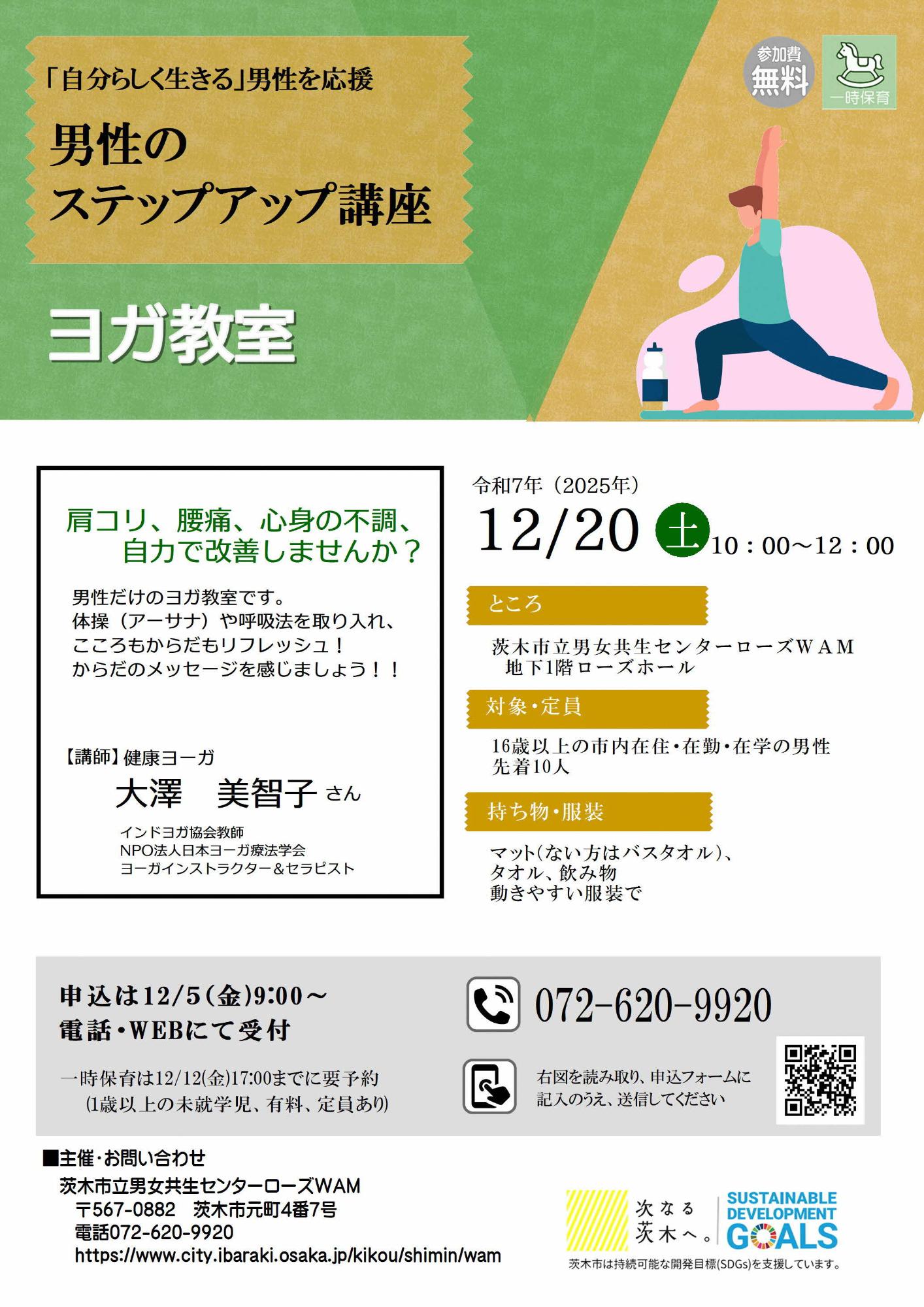 【12月20日開催】男性のステップアップ講座~ヨガ教室