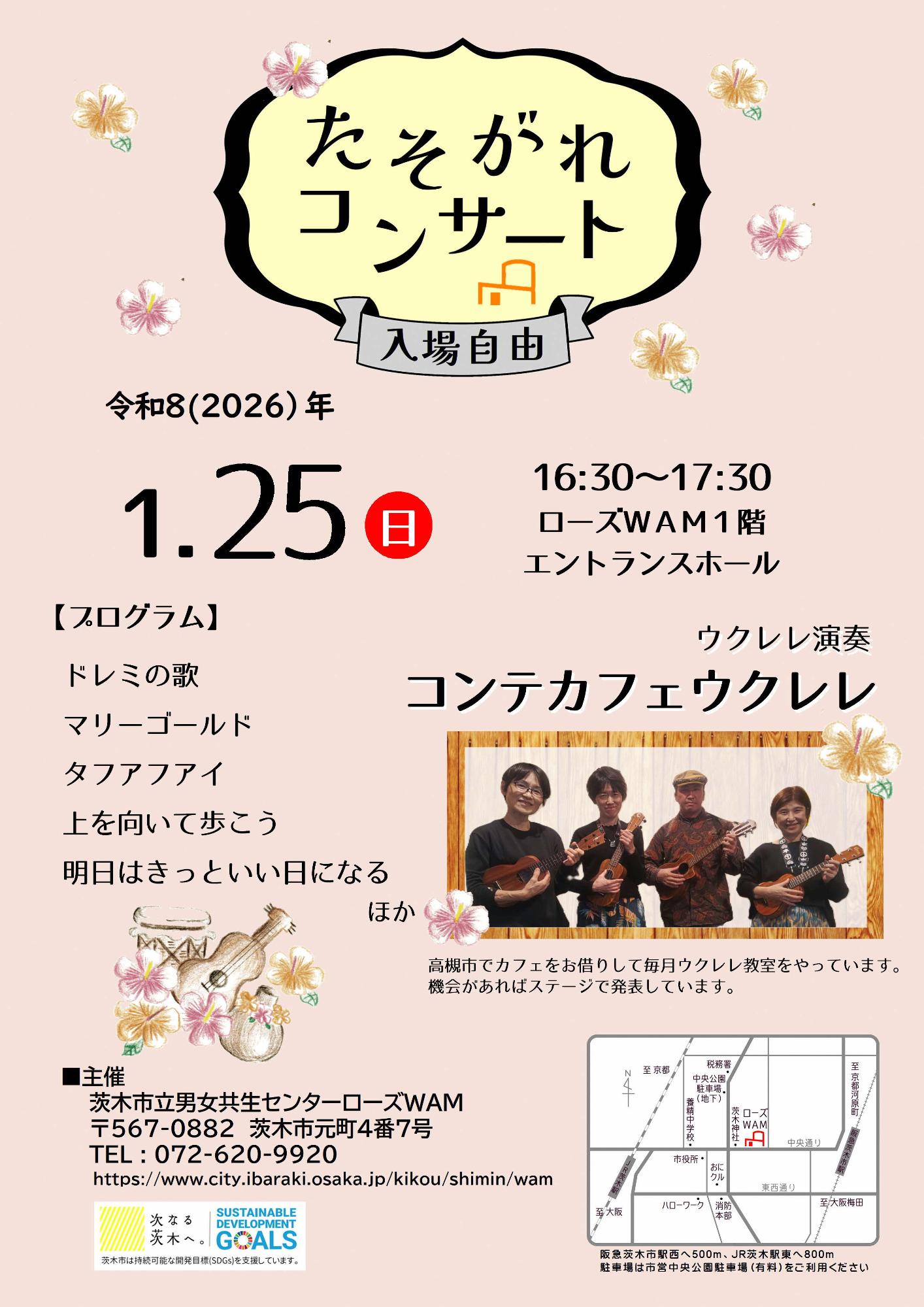 【1月25日開催】たそがれコンサート「コンテカフェウクレレ」