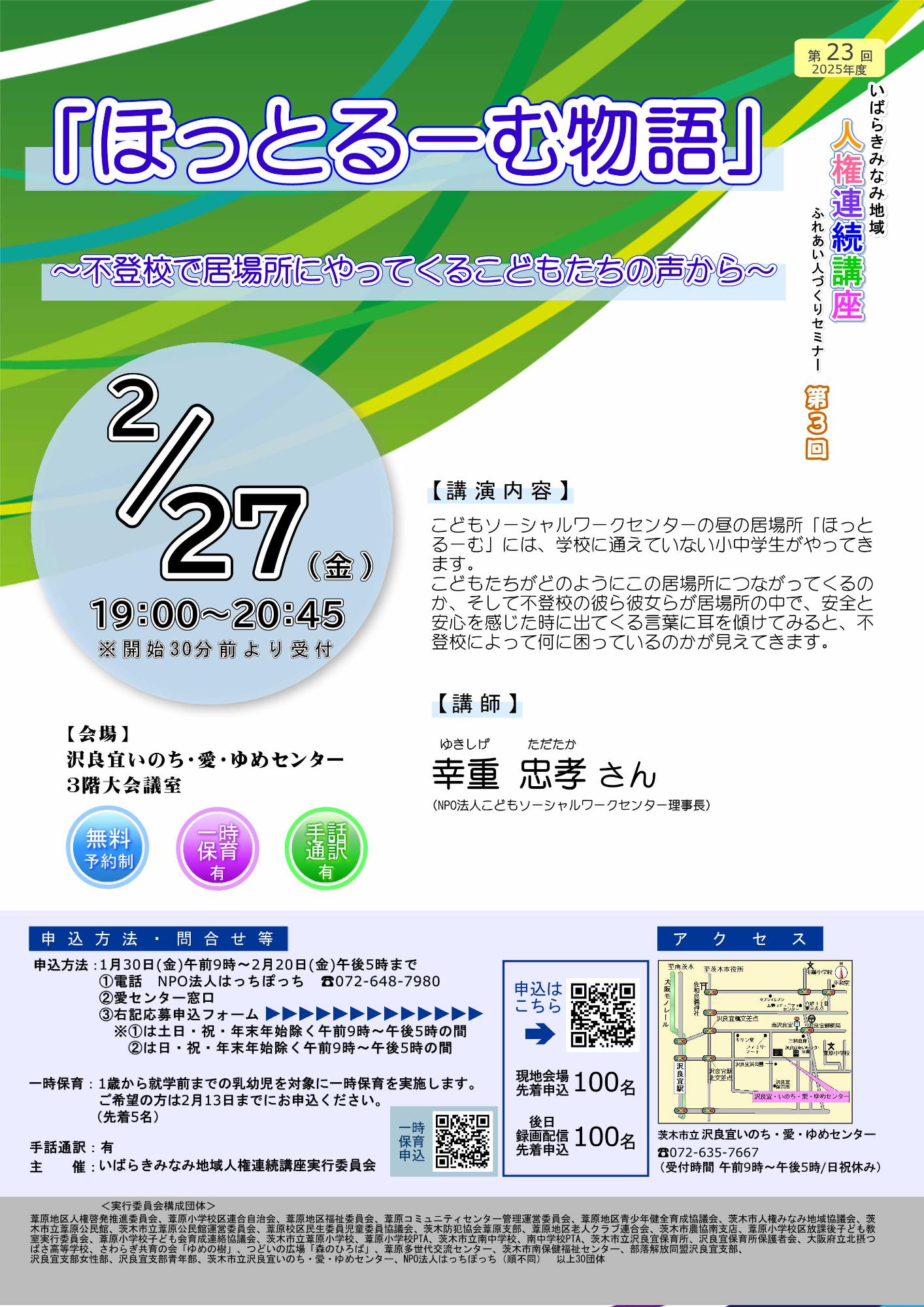 【2月27日第3回目】2025年度いばらきみなみ地域人権連続講座ふれあい人づくりセミナー