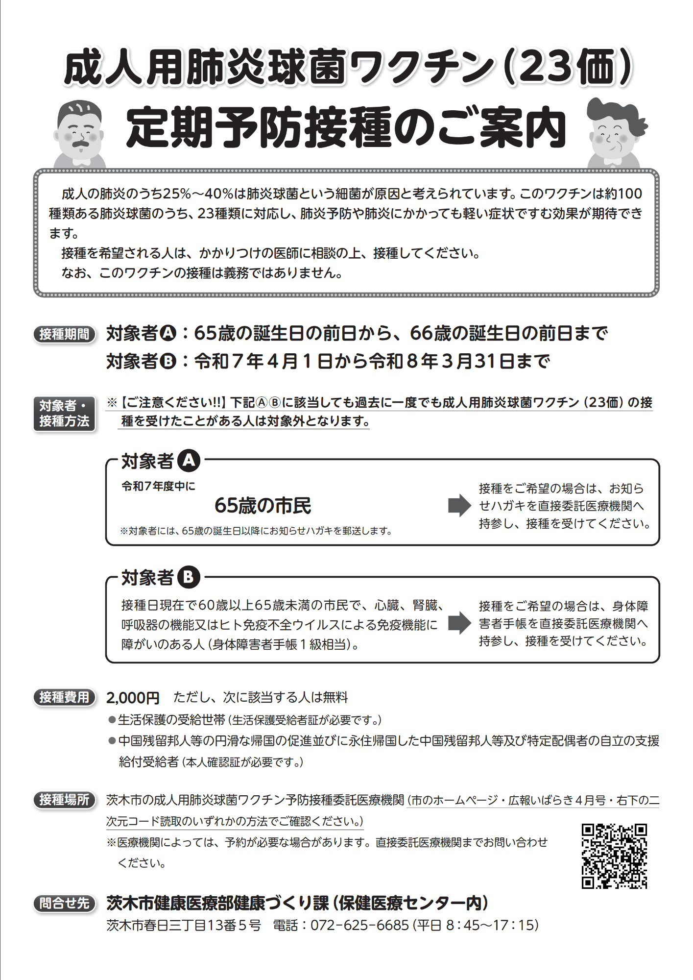 茨木市外で成人用肺炎球菌ワクチン(23価)予防接種を希望される方へ