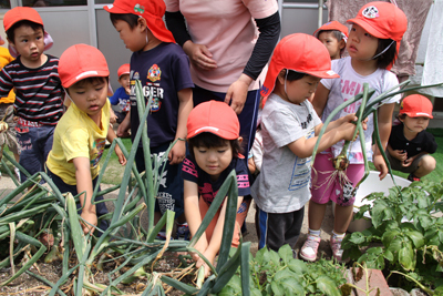 5月30日 中津保育所の子どもたちがじゃがいもと玉ねぎを収穫