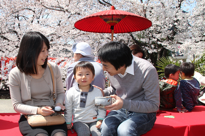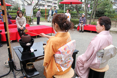 さくらまつりで行われた邦楽演奏と野だての様子です。