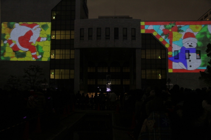 12月22日、「いばらき光の回廊~冬のフェスティバル~」の一環として、クリエイトセンター前でプロジェクションマッピング「サンタ・カンパニー」の上映がありました。