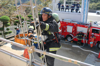 今年で4回目を迎えるこの錬成会は、日頃の訓練の成果を実際の火災現場で生かすための救助及び消火技術の向上をめざして行っています。