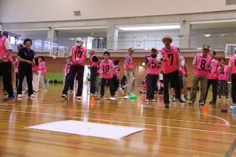 これは、ニュースポーツに取り組むことで頭と身体を使い、健康増進を図ることを目的に行われたもので、当日は、市老人クラブ連合会の会員や一般参加者ら計66人の60歳以上の市民が参加しました。
