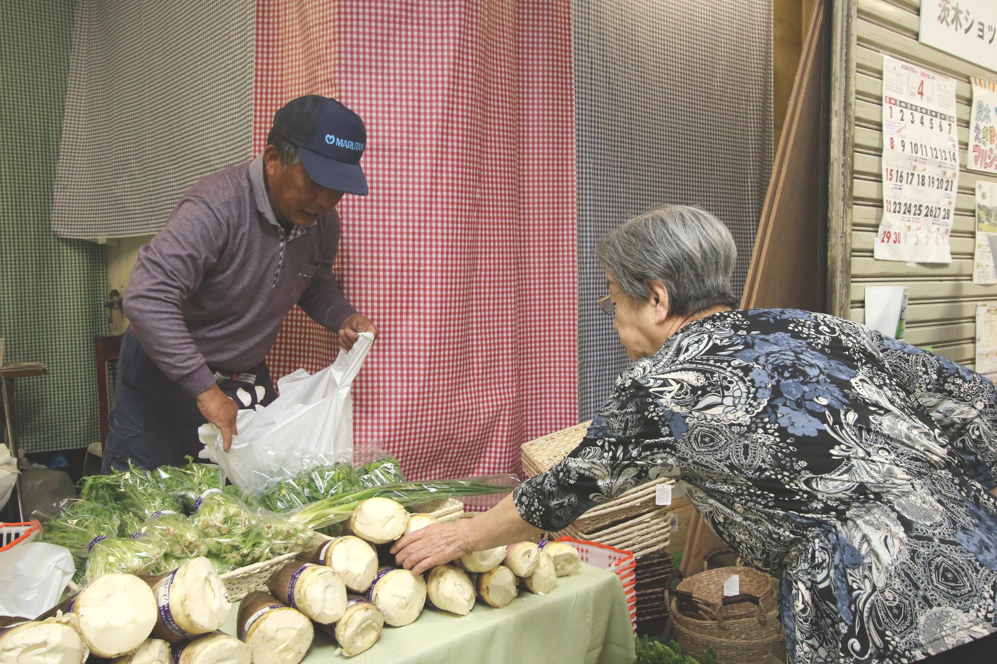 南北の長さが約17kmと、縦に長い茨木市。南部の市街地と違い、市の北部に豊かな山や緑があることを知っている市民は多いですが、実際に足を運ぶ人は多くはありません。こうした中、あまり「山」に行かない「まち」の人に北部の貴重な緑や農産物の魅力を知ってもらい、山間部を活性化させたいという思いを持つ農家などが集まり、「いばきたマルシェ」が始まりました。新鮮な野菜を扱う商店が無かった同ショップタウンのニーズとも一致しました。