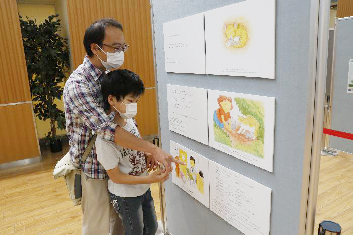 会場では、獣医師である橋本恵莉子さんの絵本「お母さんのらねこのおはなし」をパネル展示しました。絵本にえがかれているのは、TNR(猫を捕まえて、不妊手術をし、元の場所に戻す)活動を地域で見守っていく話。不妊手術が終わっている猫の耳をV字にカットすることで、別の人が再度捕獲するのを防げることや、その一代限りの命を地域で見守る活動があることなどを、子どもたちでも理解できるようになっていました。