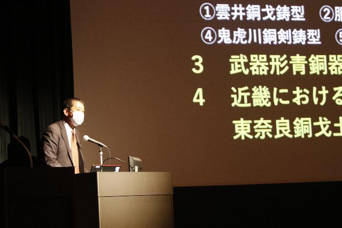 11月5日、生涯学習センターきらめきで、東奈良遺跡銅鐸鋳型発見50周年プレ事業シンポジウム「銅鐸から弥生時代社会を見直す」を開催しました。