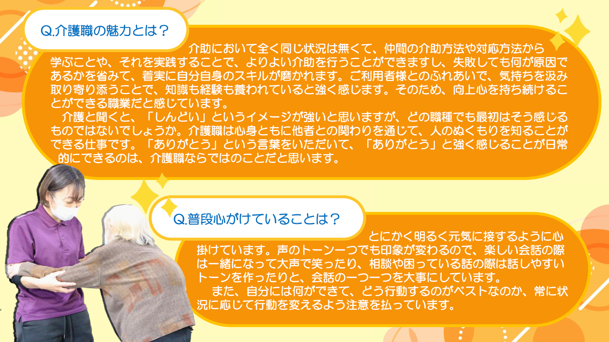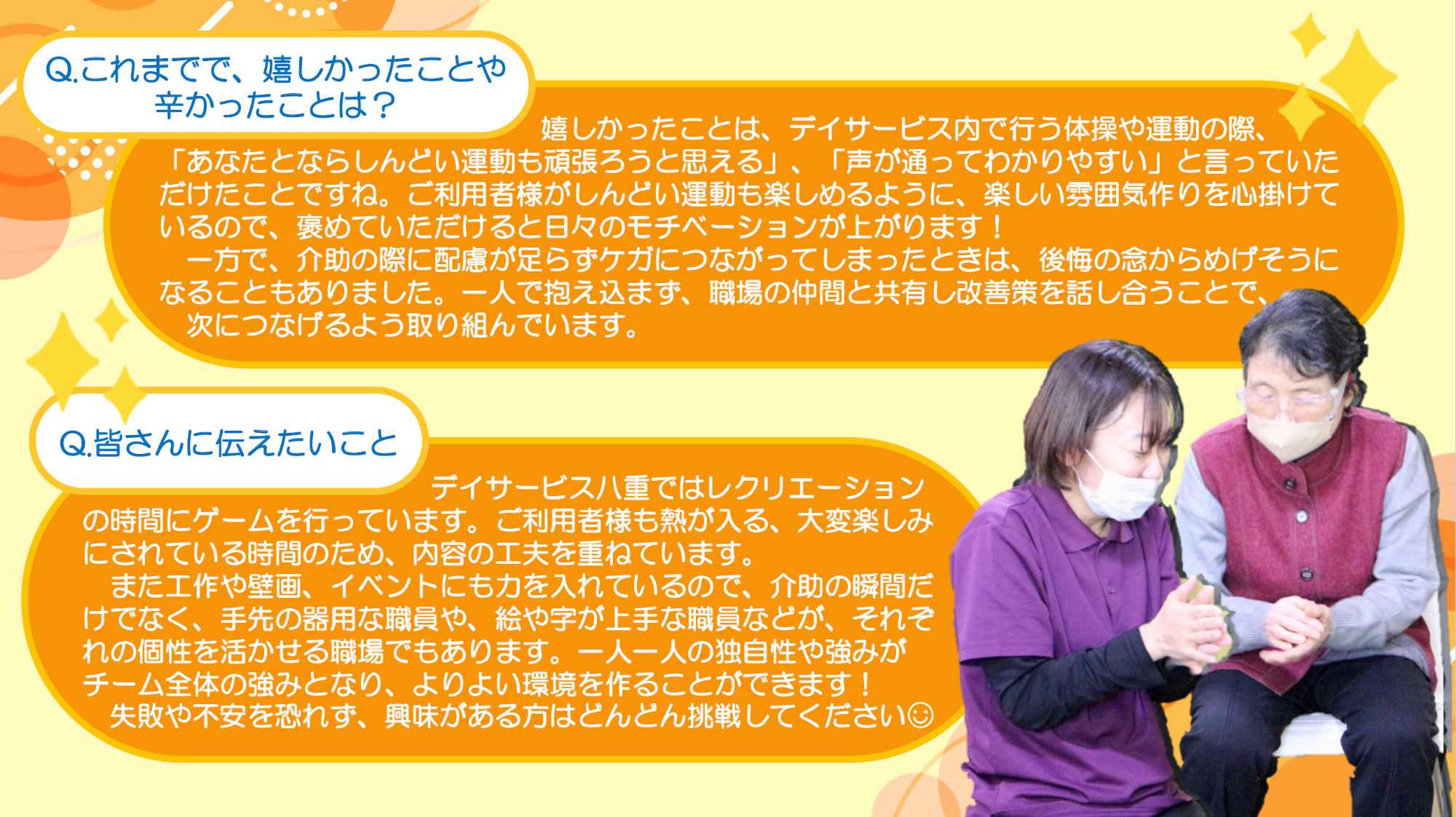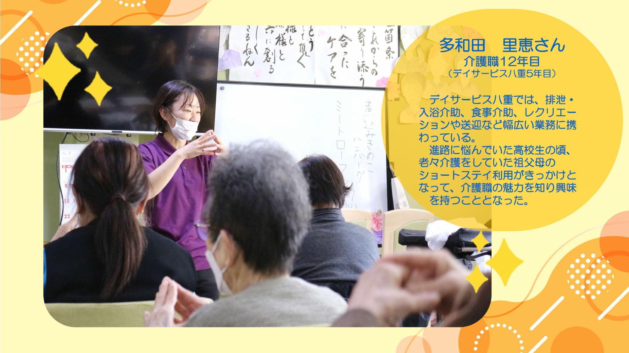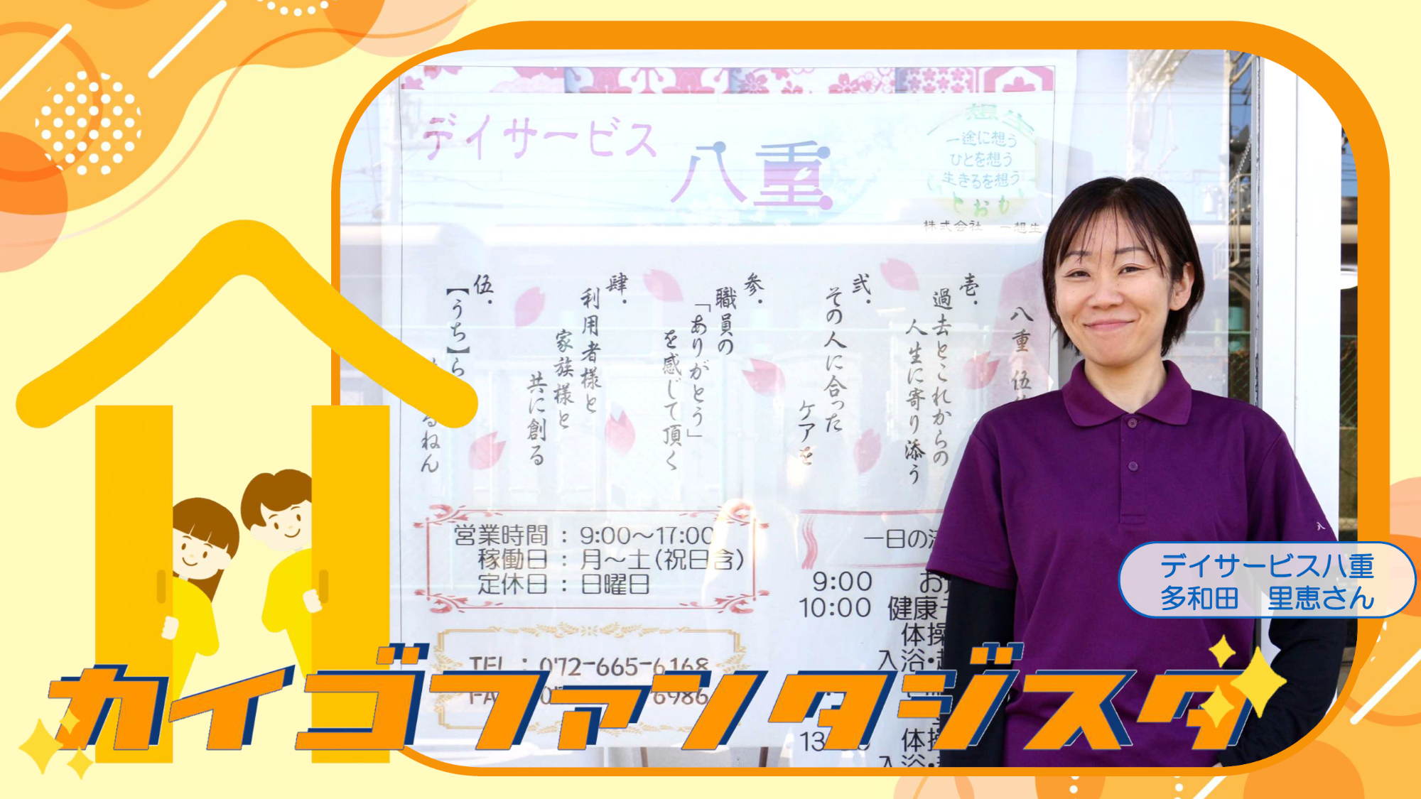 茨木市内の介護事業所、「デイサービス八重」で働かれている多和田里恵さんをご紹介いたします!
