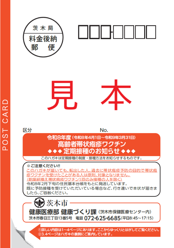 令和8年度高齢者帯状疱疹ワクチン定期接種の案内ちらし(茨木市)(PDFファイル:1.6MB)