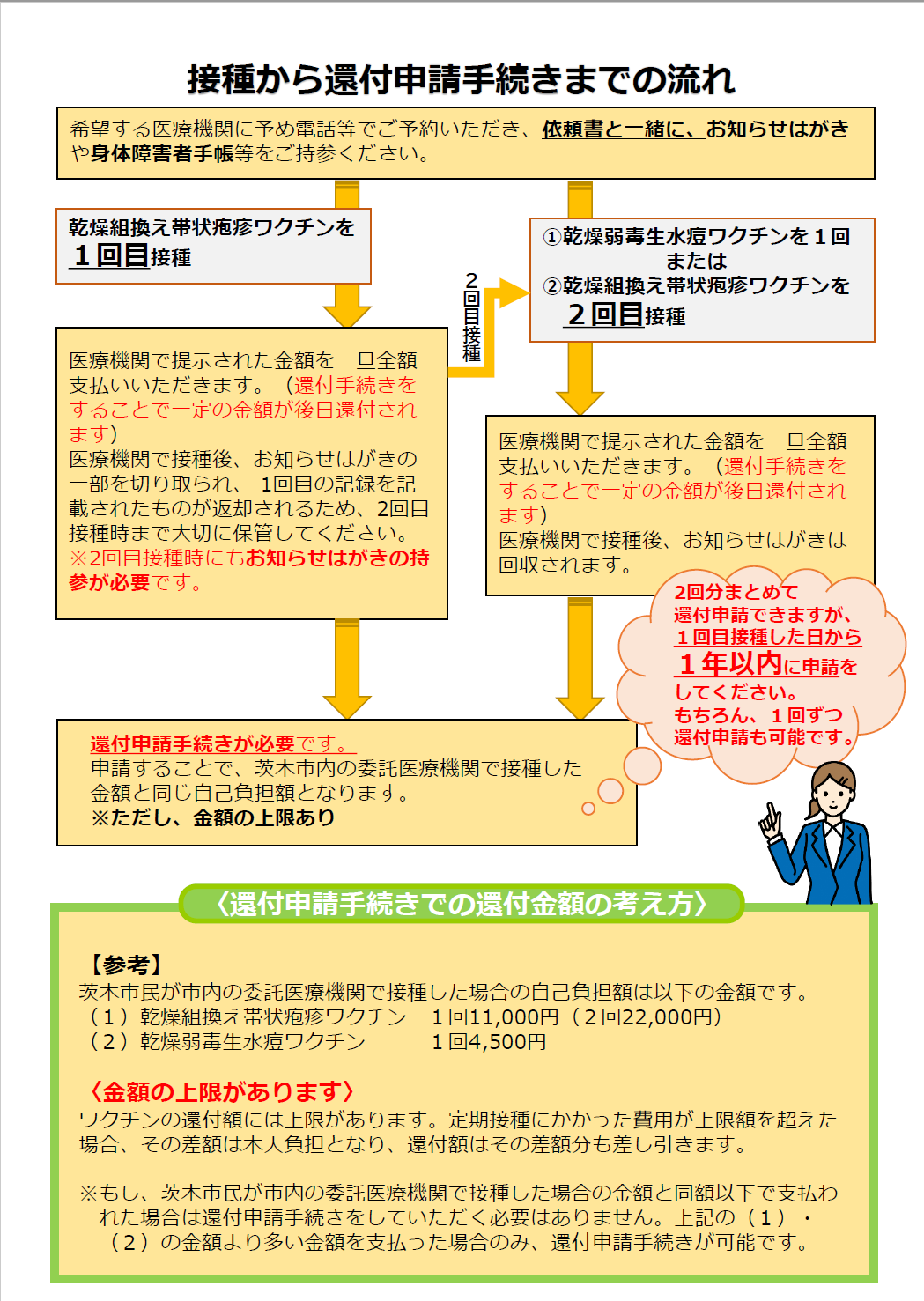 全額有料で接種を受けた場合、後日、茨木市から費用の一部を助成します。助成金の申請方法については、下記「全額有料で接種を受けた場合の助成金申請について」をご確認ください。