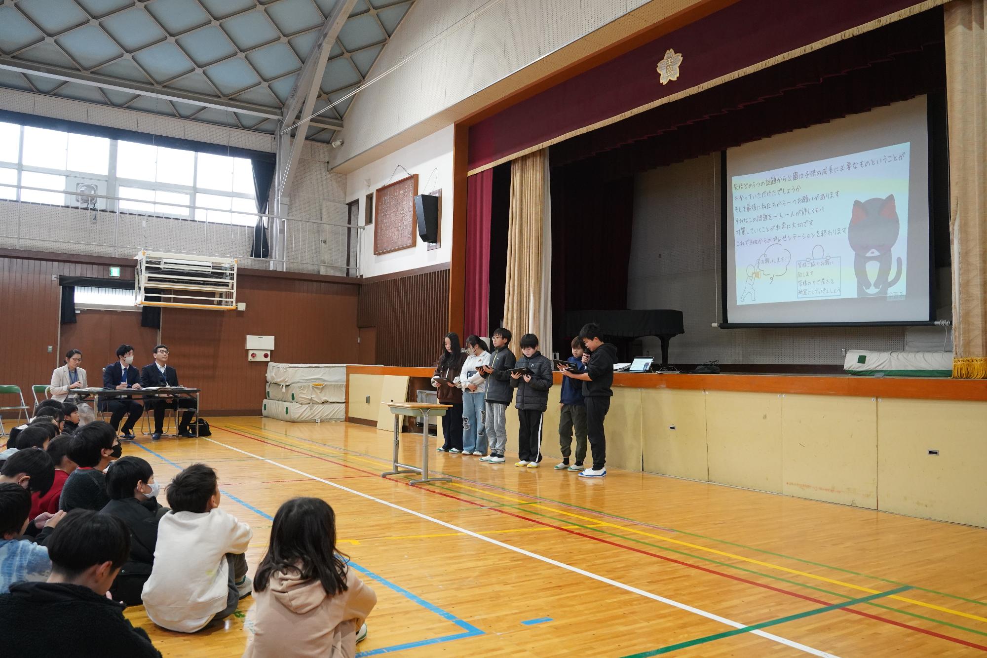 令和8年2月12日(木曜日)、6年生総合学習の成果発表として、「誰一人取り残さない」よりよい地域をめざし、自らが考えた地域課題への解決策等を発表しました。