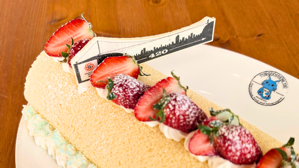 日本最長の吊り橋を眺めながら、「420CAFE」の皆さんの指導のもと、茨木産いちごを使用した、