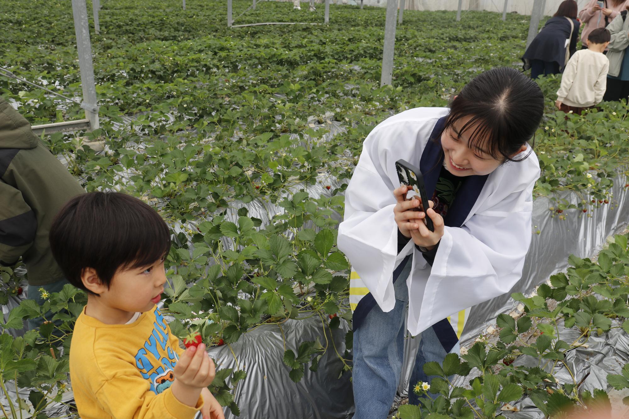 いちご農園での取材の様子