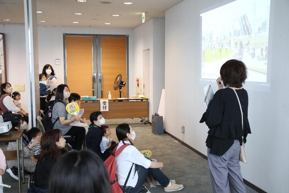 当日は2部制に分けて21組44人の方にご参加いただき、新施設「おにクル」周辺施設を徒歩で巡り、新施設の工事見学や消防車見学等を親子で体験。その後、希望された方は出前型一時保育を利用し、大人だけのゆったりとした時間もお楽しみいただきました。