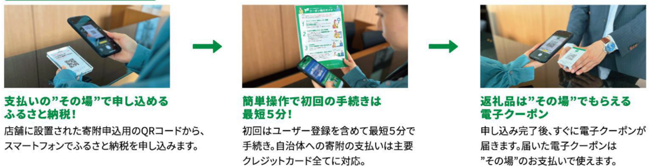 茨木市では、ふるさと寄附の受付方法として、寄附者が店頭等で二次元コードを読むことで寄附を行い、その場で返礼品として「電子クーポン」を受け取る現地決済型「ふるさと応援納税🄬」を令和8年2月から提供開始しています。