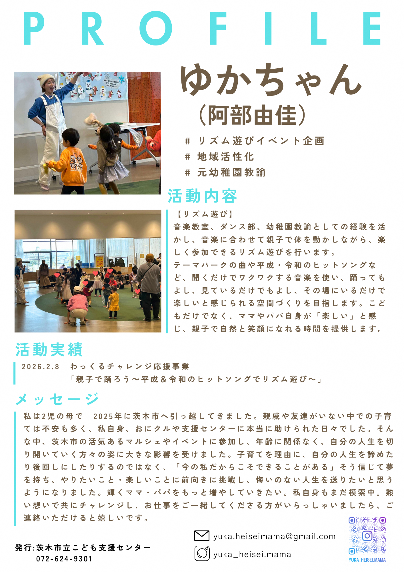 わっくるチャレンジ応援事業で子育てイベント・講座を実施した企画者の方が地域でもご活躍できるよう、企画者の方をご紹介します。