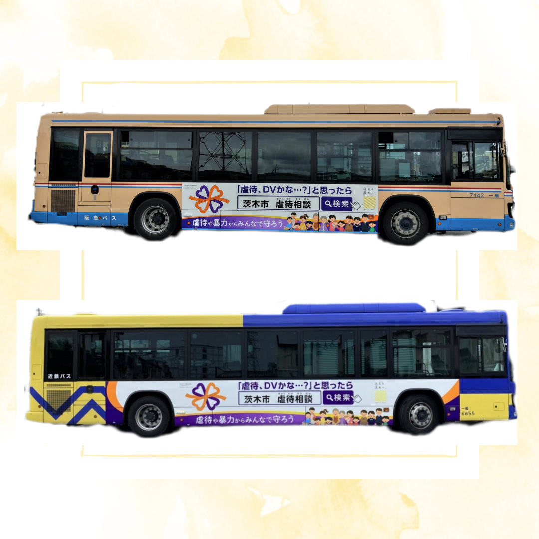 年間をとおして、近鉄バス・阪急バスのラッピングバスが2台、市内を運行しています。