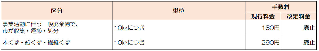 事業活動に伴う一般廃棄物の収集運搬は、自己搬入または許可業者に変更したため、市による収集運搬を廃止します。