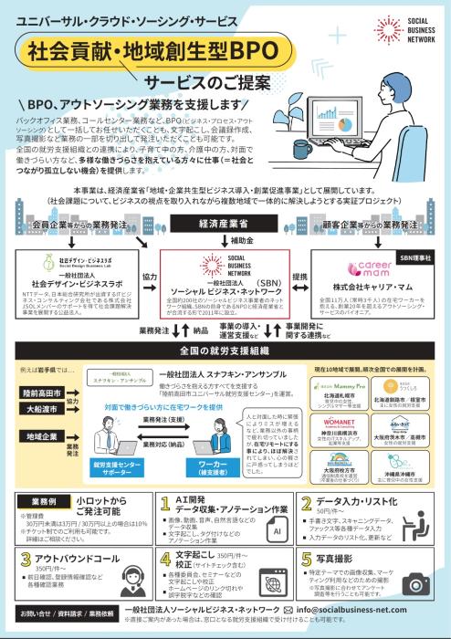 バックオフィス業務(一般事務~総務・経理業務等)、コールセンター業務、WEBサイト運営業務等の一括委託や文字起こし、会議録作成、写真撮影等を承ります。
