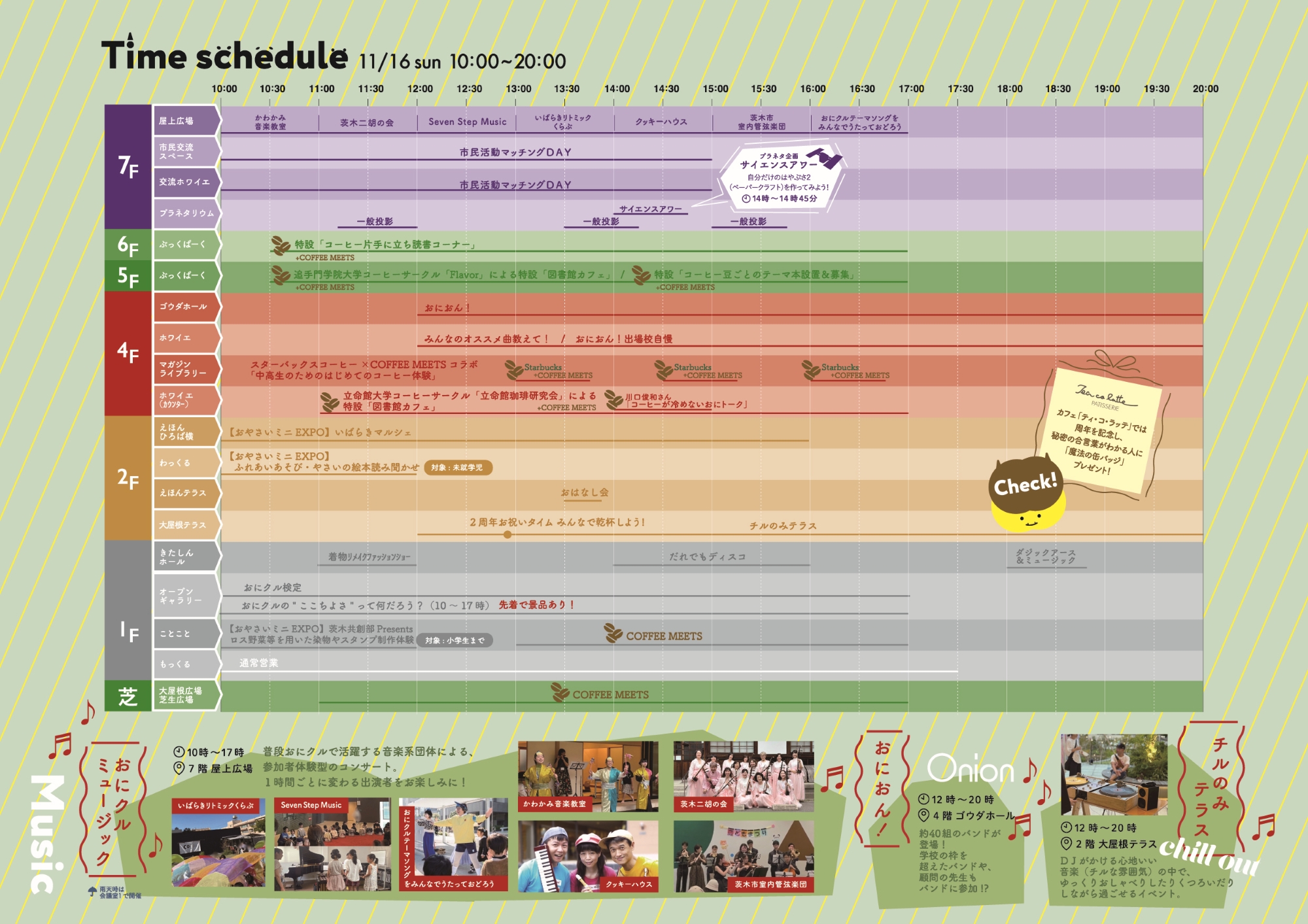 4階 ゴウダホールおにおん!開催時間:12時~20時 市内8つの高校の軽音部と立命館大学映像学部の学生のコラボが生み出す「音楽」×「映像」×「青春」のコンビネーションライブ。 1,201席のゴウダホールを1日限りのライブ会場に、学校ごとのバンドだけでなく、学校の枠を超えた合同バンドも登場。そして、立命館大学映像学部の学生VJが、音楽と映像を結びつけます! 「おにおん!」プログラムはこちら(PDFファイル:1.8MB) 4階 ホールホワイエCOFFEE MEETS・図書館コラボ「コーヒーが冷めないおにトーク」トークイベント開催時間:14時~15時 小説家・脚本家の川口俊和さん(茨木市出身)とのコラボ企画。映画にもなった作品「コーヒーが冷めないうちに」にちなんだワークショップやトークイベントを開催。 COFFEE MEETS・図書館コラボ「図書館カフェ」出店時間:11時~17時 おにクルぶっくぱーくに、コーヒーが飲める一日限りのカフェを出店!4階は、立命館大学コーヒーサークル「立命館珈琲研究会」が担当します。 COFFEE MEETS・スターバックスコーヒーコラボ「中高生のためのはじめてのコーヒー体験」出店時間:13時~13時45分、14時半~15時15分、16時~16時45分 中高生向けに、コーヒーの淹れ方ワークショップを開催します!