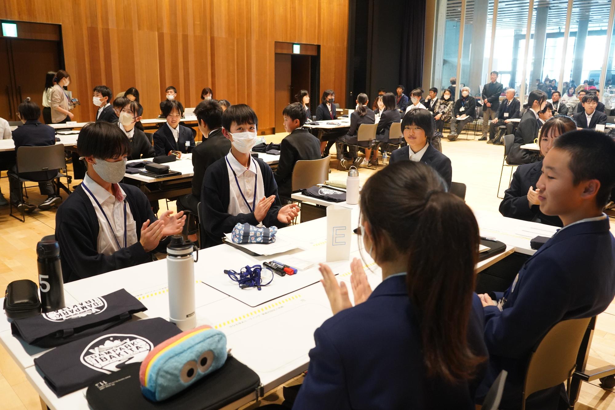 市長:皆さんお疲れさまでした。今回発表を聞かせてもらって、明らかになったのは「圧倒的に給食を食べる時間が短い」ということでした。給食時間を確保するための取り組みやアイデアも色々な意見が出ましたね。メニューを中学生が考案すると、本当に残食の削減につながるのかなど、検証しがいのある提案が多かったです。いずれにしても、みなさんの発表を聞いて学ぶことが多かったので、今後の参考に間違いなくさせていただきます。ありがとうございました!