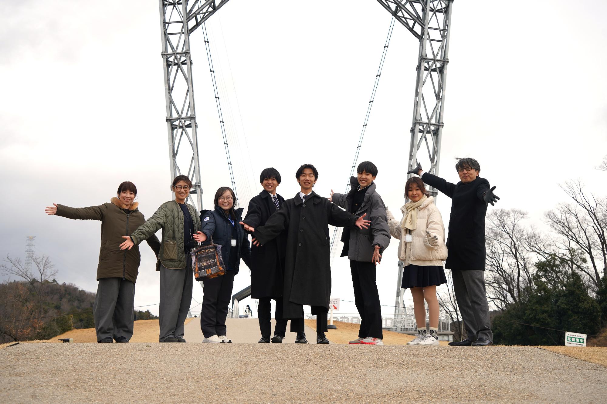 吊り橋をバックに記念撮影を行いました!
