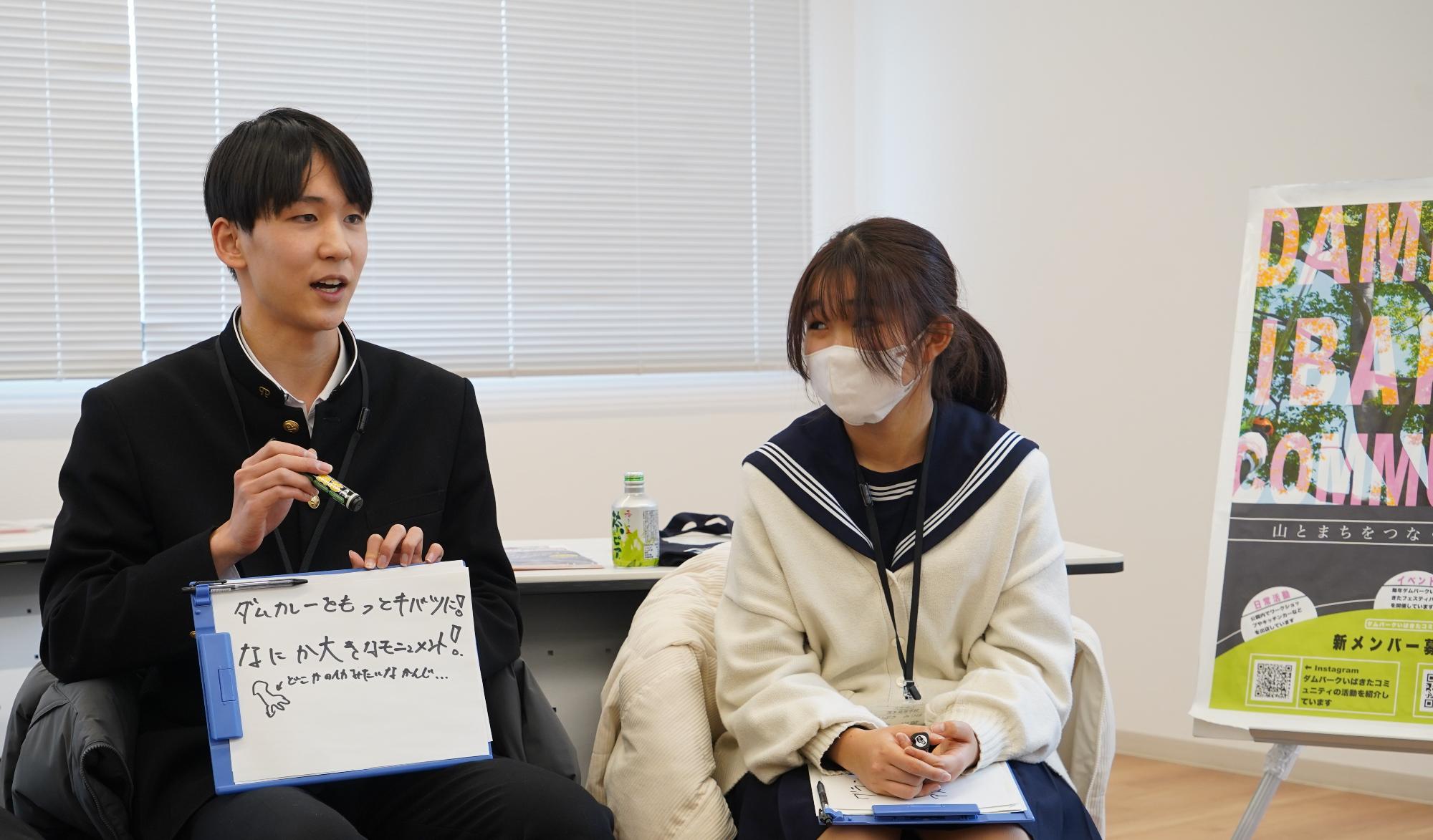 次に、「いばきたエリアをさらに盛り上げるために、こんなものがあればいい」というアイデアを、自己紹介と同様に記入ボードに書いて発表してもらいました。