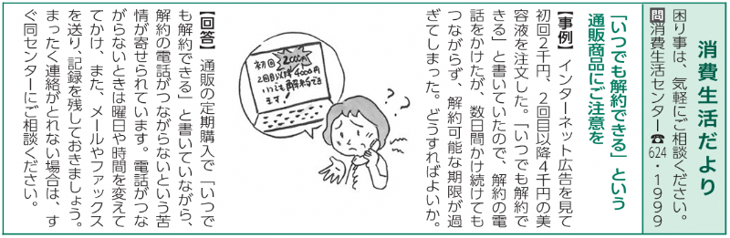 2021年8月【「いつでも解約できる」という通販商品にご注意を】