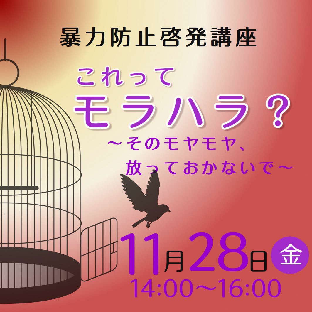 - 【11月28日開催】暴力防止啓発講座『これってモラハラ?~そのモヤモヤ、放っておかないで~』