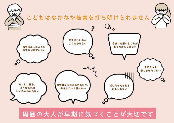 こどもへの性被害は、身近な人でも気づきにくいものです。