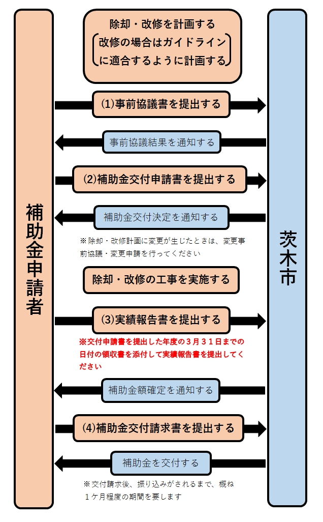 補助金の交付を受けるためのフロー図は、以下のとおりです。