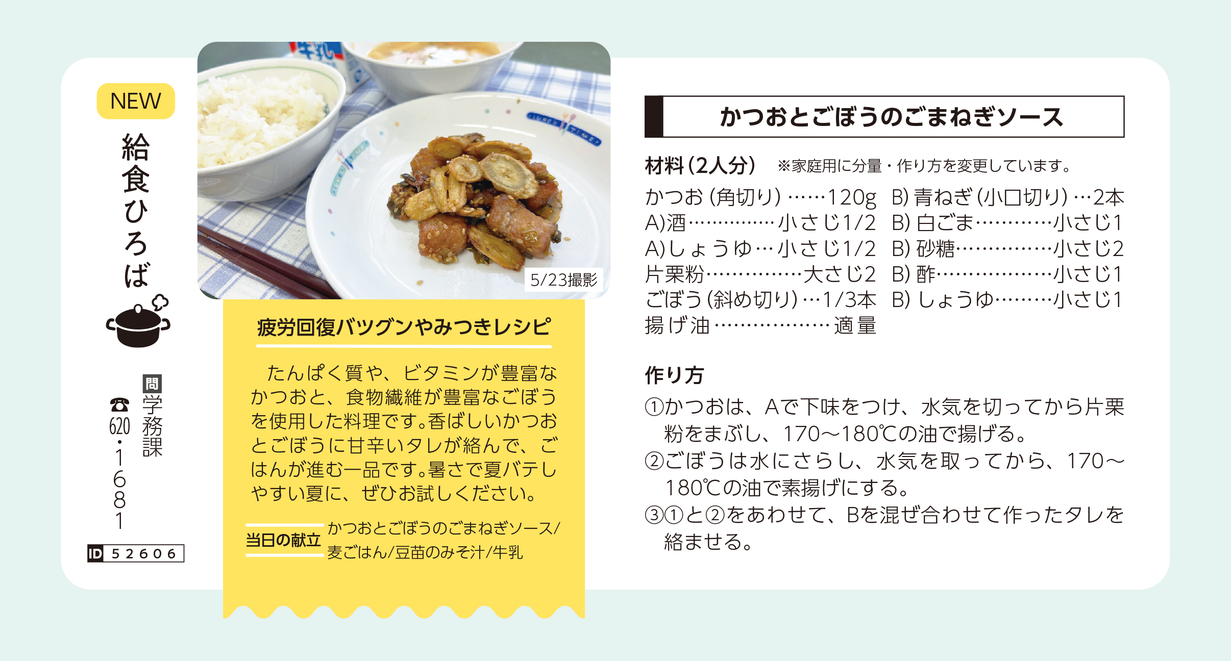 かつおとごぼうのごまねぎソース (JPEG: 993.4KB)