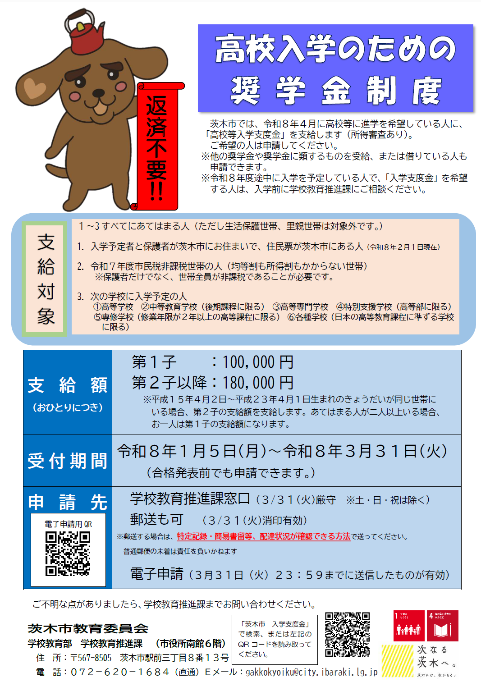 高校等への入学を応援します(茨木市奨学金制度)