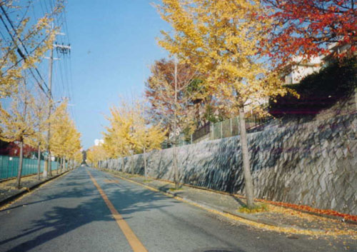 朝日、夕日に映えるイチョウ並木(1)