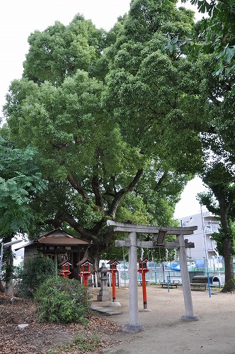 本日は、散歩方々水尾の伯光神社へ写真撮影に赴きました。非常に小さな稲荷神社ですが、茨木市が保存樹として第一号に指定した大きな楠の御神木のある神社です。(2011年9月19日撮影)