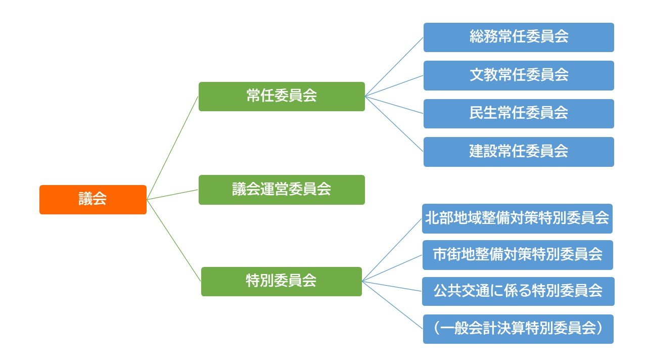 所管事項:議会の運営に関する事項、議会の会議規則、委員会条例等に関する事項、議長の諮問に関する事項